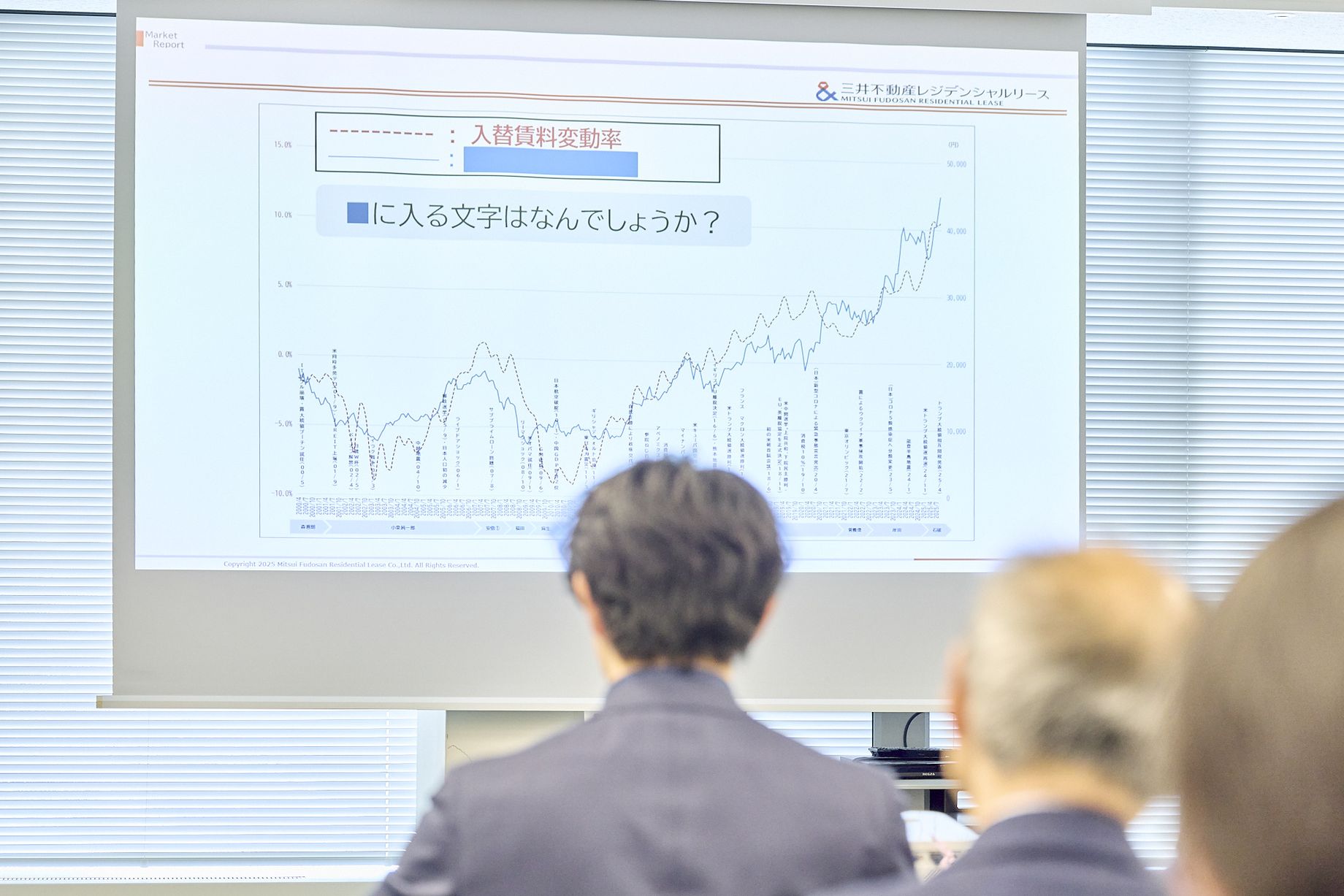 「ここでクイズです」。冒頭、林は「入替時賃料変動率(※)」と「ある指標」を重ねたグラフを提示し、参加者に問いかけた。